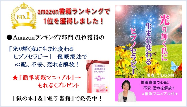 「光り輝く私に生まれ変わるヒプノセラピー」はAmazonにて好評販売中!